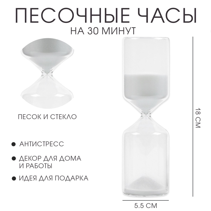 Размеры часов составляют 5.5 x 18 см, что позволяет им гармонично вписаться в любое пространство. Корпус изготовлен из прочного стекла, а внутреннее содержимое – из мелкого песка, создающего плавный переход времени. Каждый момент переливания песка напоминает о мимолетности времени и призывает наслаждаться каждым мгновением жизни.