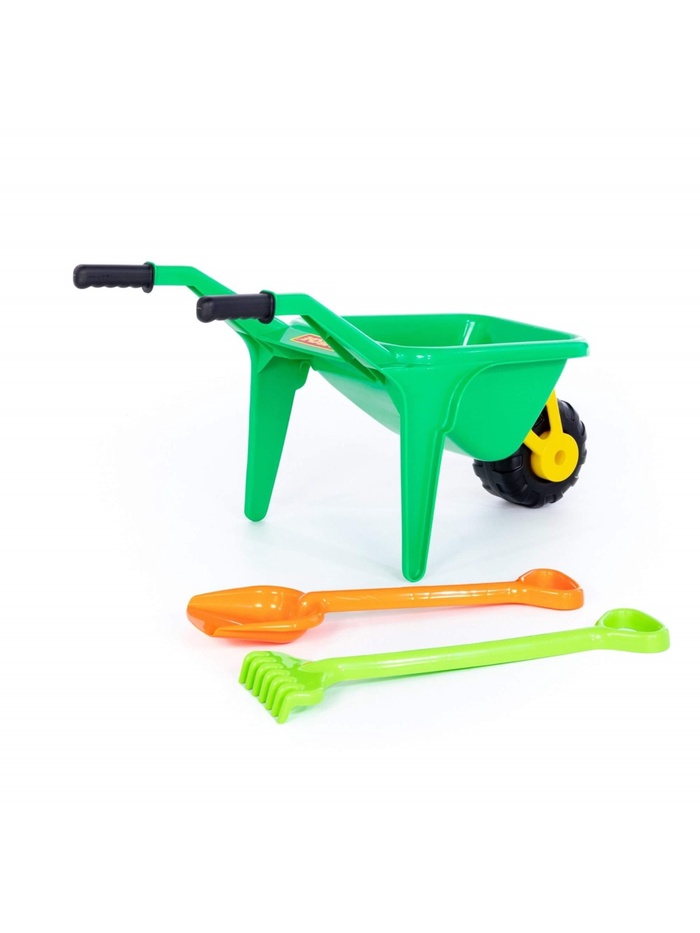 Набор «Садовод» — это все необходимые инструменты для юного фермера: тачка, лопатка и грабли. Их яркую цветовую гамму видно издалека, а это значит, что малыш не потеряет игрушки в высокой траве.