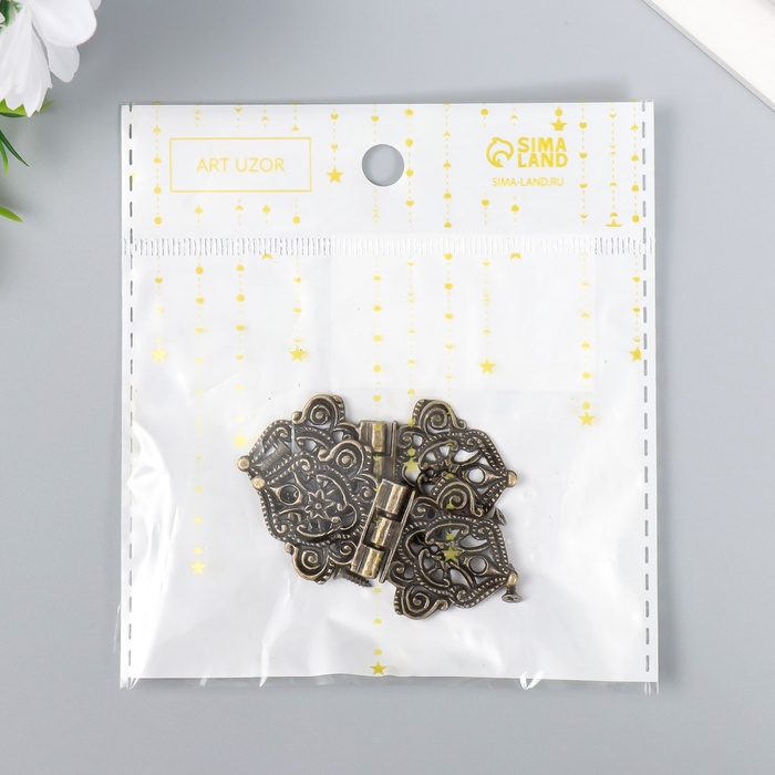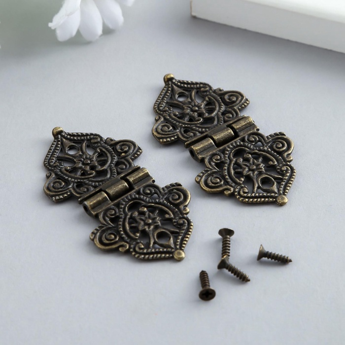 Петля для шкатулки металл "Узорная с цветами" бронза + гвозди набор 2 шт 5,3х2,8 см