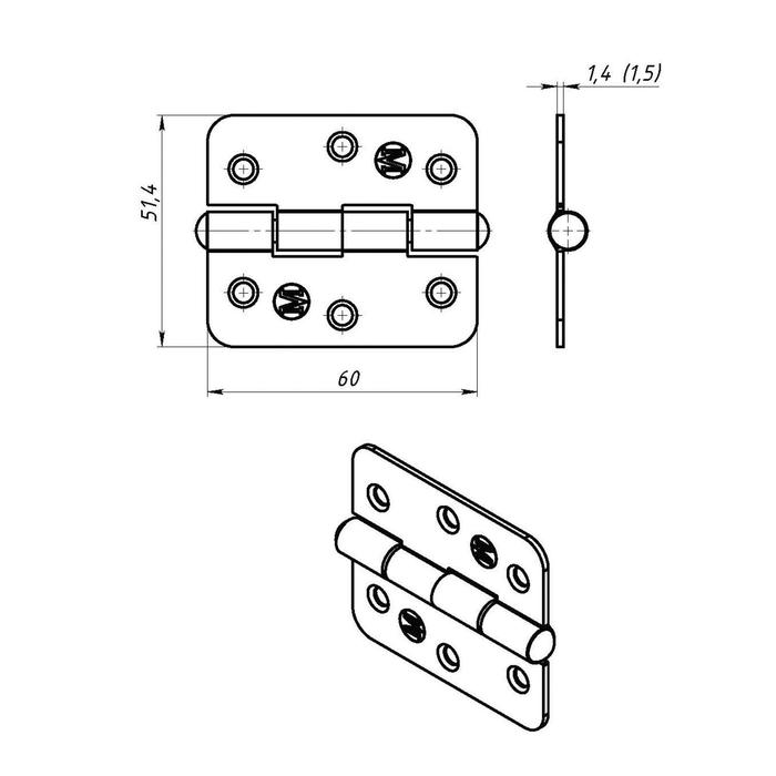 Петля накладная ТУНДРА ПН5-60, покрытие полимер, белая, 1 шт.