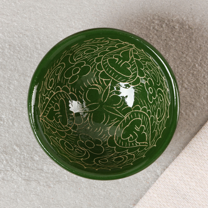 Изготовленная из прочной керамики, эта пиала отличается долговечностью и надежностью. Ее нельзя мыть в посудомоечной машине, что помогает сохранить оригинальный рисунок и матовую поверхность. Тематика растительного орнамента в зеленых оттенках делает каждую посуду особенной, а классическая форма с гладкой поверхностью подходит для ежедневного использования или особых случаев. Такой предмет станет отличным дополнением к домашней сервировке или подарком для ценителей традиционного узбекского ремесла.