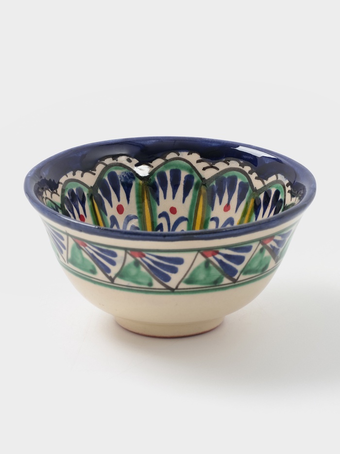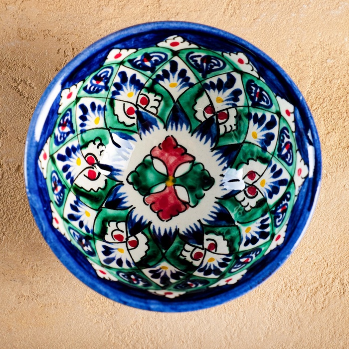 Эта узбекская керамическая пиала с растительным орнаментом — это изделие ручной работы, которое сочетает в себе традиционный дизайн и практичность. Ее объем 200 мл и диаметр 11,5 см делают ее универсальным посудным предметом для подачи горячих напитков, десертов или небольших закусок. Яркий растительный рисунок на гладкой поверхности добавляет эстетики и национального колорита в каждодневную сервировку.