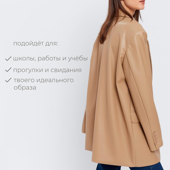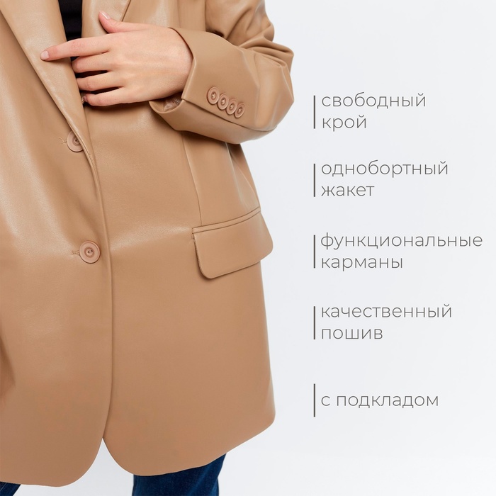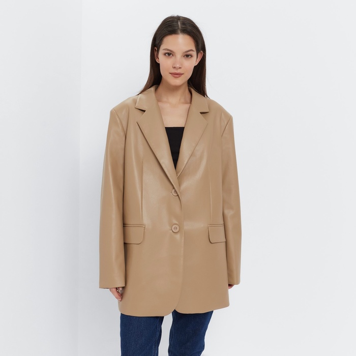Пиджак женский (экокожа) MINAKU: Eco leather, цвет бежевый, размер 46-48
