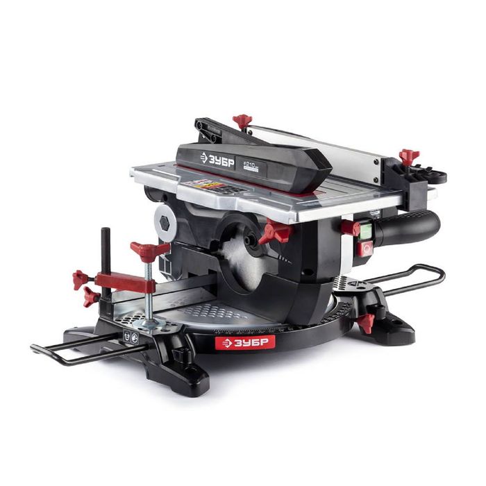 Модель «ЗУБР ЗПТК-210-1500» предназначена для распиливания древесины, пластика, металла под прямым или заданным (до 45°) углом.