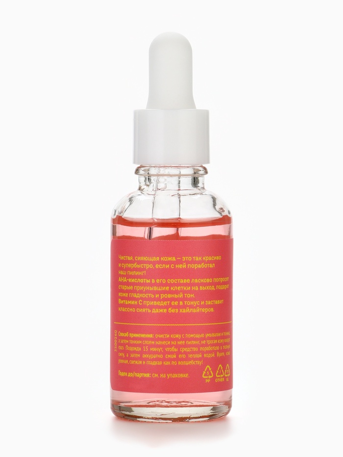 Состав: Aqua, Lactic Acid, Sodium Hydroxide, Glycolic Acid, Ethylhexylglycerin, Phenoxyethanol, Hydroxyethylcellulose, 3-o-Ethyl Ascorbic Acid, Citrus Paradisi Fruit Extract, PEG-40 Hydrogenated Castor Oil, Parfum, Disodium EDTA, CI 16255.