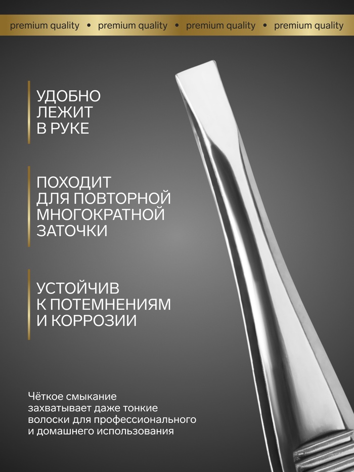 Пинцет серии Premium от Queen fair изготовлен из высококачественной нержавеющей стали. Он точно захватывает волоски и аккуратно удаляет их, обеспечивая безупречный результат. Благодаря удобной форме инструмент легко держать.