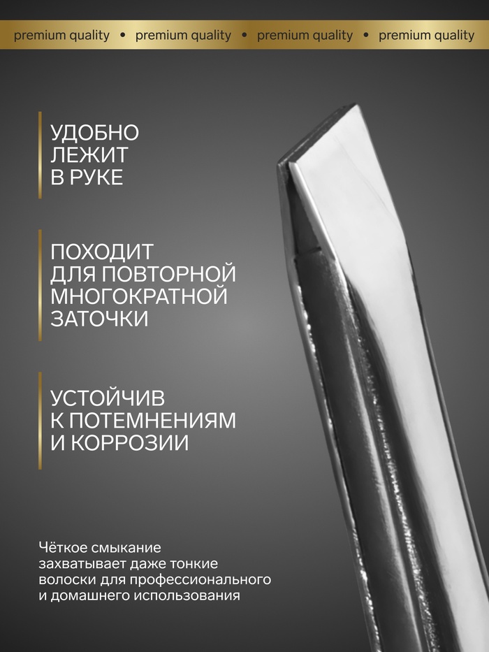 Пинцет серии Premium от Queen fair изготовлен из высококачественной нержавеющей стали. Он точно захватывает волоски и аккуратно удаляет их, обеспечивая безупречный результат. Благодаря удобной форме инструмент легко держать.
