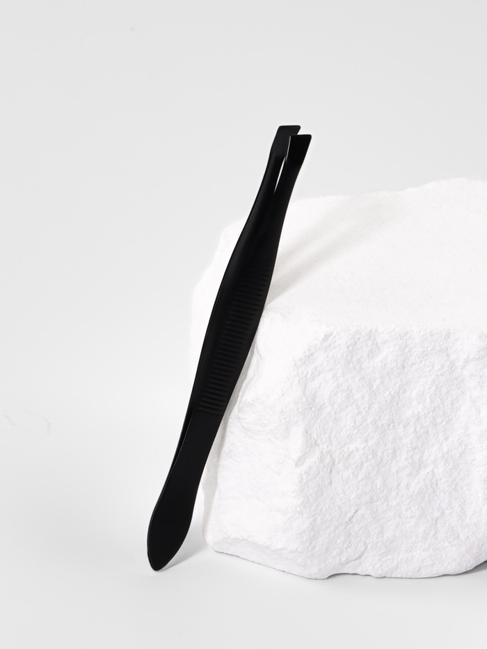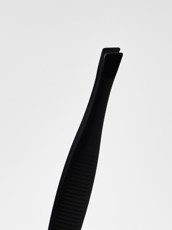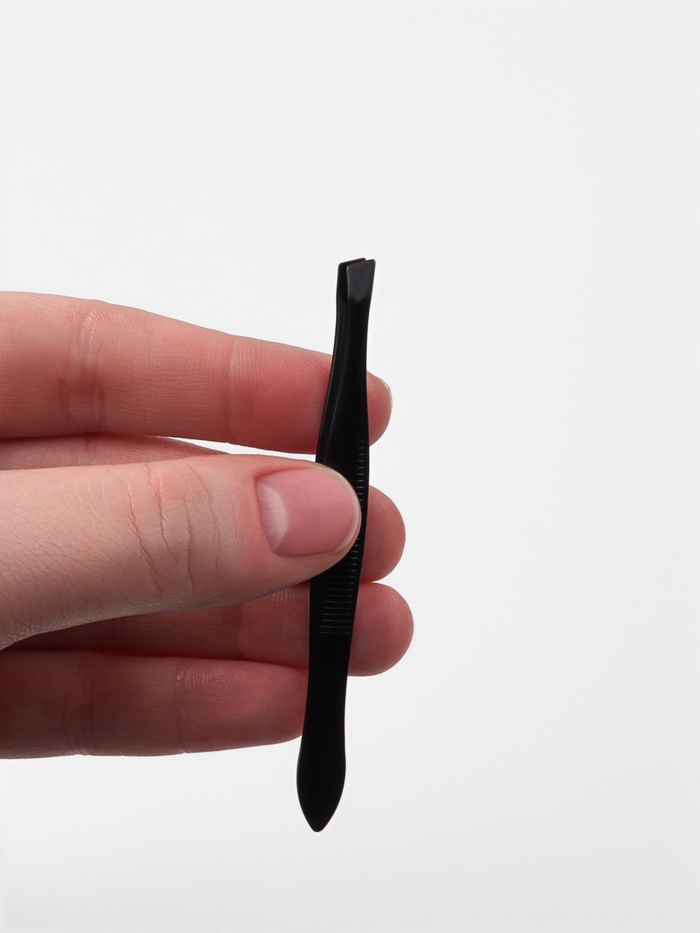 Конструкция со скошенными концами позволит избавиться от «излишков» самостоятельно: нужно всего лишь схватить с помощью пинцета волосок и потянуть его в нужном направлении. А удобный резиновый держатель не даст инструменту выскользнуть из рук.