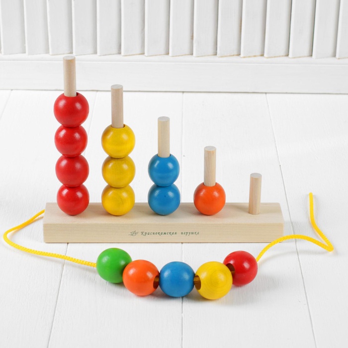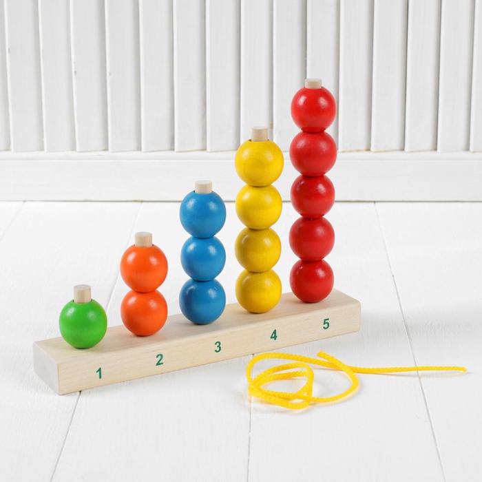 - Включает 15 колец разного размера и яркого цвета, изготовленных из натурального дерева и покрытых безопасными красками.