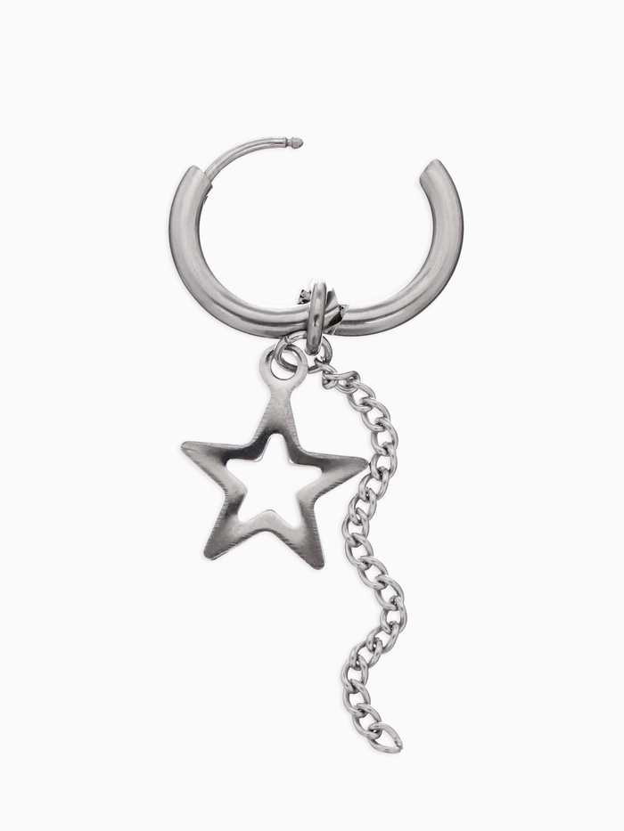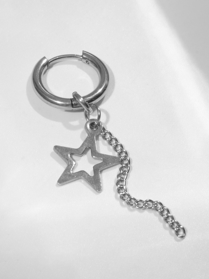 Познакомьтесь с изящным украшением, которое подарит вашему образу особый шарм и стиль — элегантное кольцо-пирсинг в ухо с блестящей звездой и тонкой цепочкой. Диаметр кольца составляет всего 15 мм, оно выполнено из высококачественной стали, покрытой серебристым цветом, подчеркивая свою изысканность и утонченность.