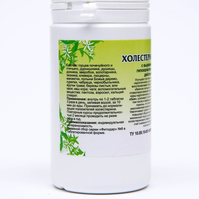 Способ применения: по 1-2 таблетки 3 раза в день растворить в 100 мл теплой некипяченой воды, либо проглотить не разжевывая, запив водой. Принимать до нормализации показателей холестерина.