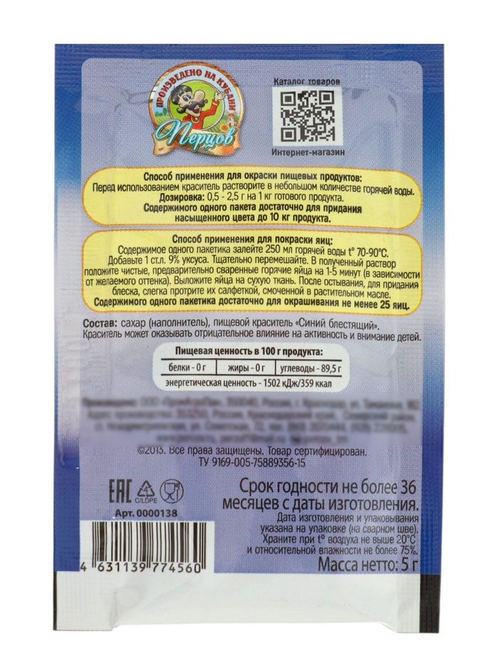 • Экономичный расход: Одного пакетика хватает на несколько партий яиц. Даже если вы планируете красить много, 5 грамм — достаточный объём. Остатки порошка можно хранить в сухом месте до следующего раза.