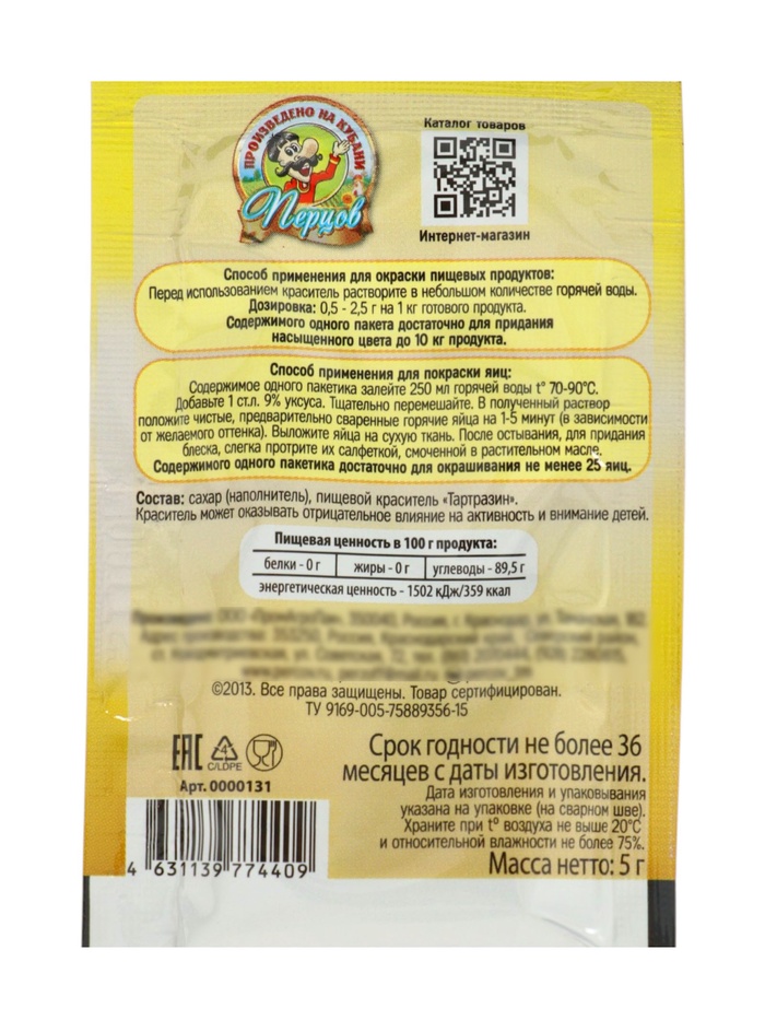 - Универсальное применение: Хотя основное назначение — пасхальные яйца, желтый краситель подходит для окрашивания глазури, крема, мастики, теста и других кондитерских изделий. Тематика универсальна, поэтому пакетик пригодится для украшения тортов на день рождения, имбирных пряников или детских капкейков.