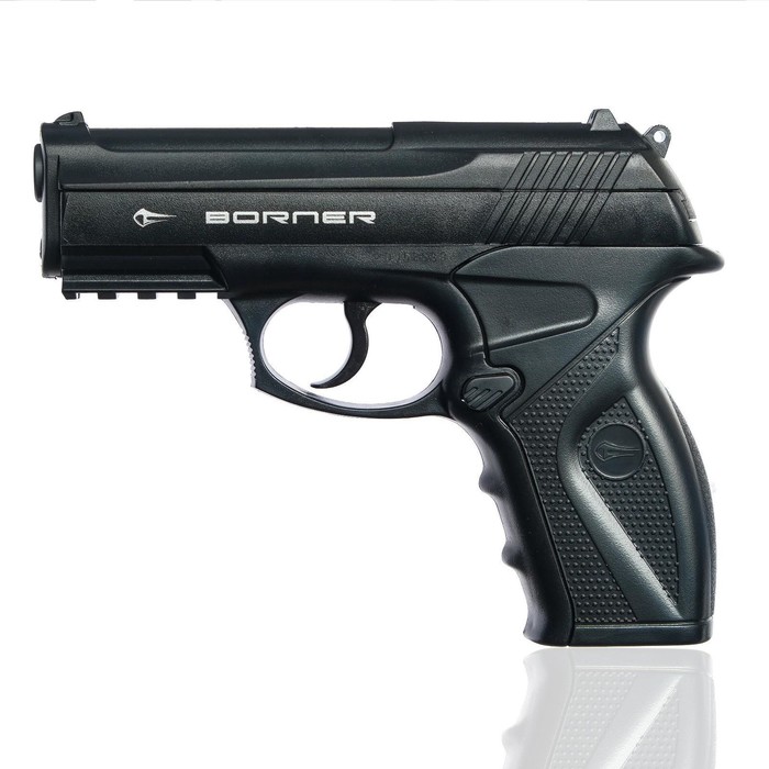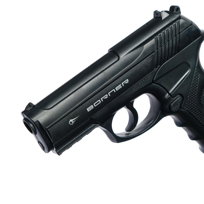 Пневматический механизм модели ориентирован на непривередливого потребителя, который хочет иметь точное, надежное и мощное оружие без дополнительных параметров. Серьезная убойная сила пистолета проявляется на незначительных расстояниях. Технические характеристики данной модели отлично сочетаются со стильным дизайном внешнего вида. Материал для изготовления корпуса - высокопрочный пластик, ствола - сталь, магазина и рабочих узлов - металл. На модели Borner C11 установлен предохранитель неавтоматический. УСМ имеет одиночное действие, стрельба осуществляется исключительно самовзводом.