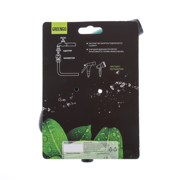 Пистолет-распылитель создан специально для ручного полива растений вашего сада и загородного участка. Напор воды можно изменять при помощи регулировочного винта на корпусе. Также вы можете изменять тип струи благодаря удобному регулятору интенсивность полива варьируется от «легкого летнего дождя» до мощной струи.
