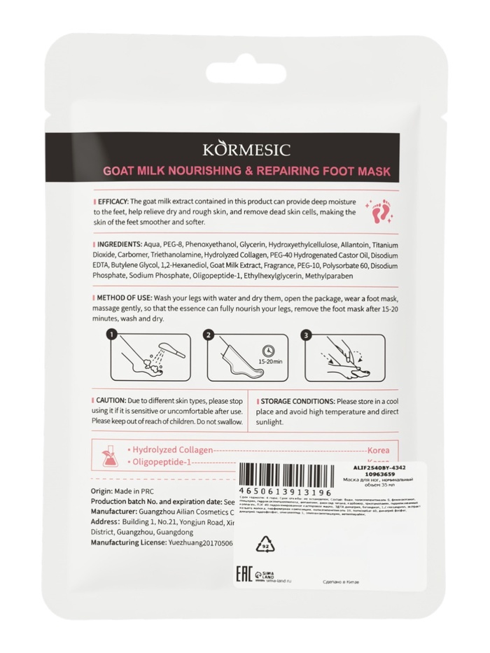 Питательная и восстанавливающая маска для ног с козьим молоком, 35 мл