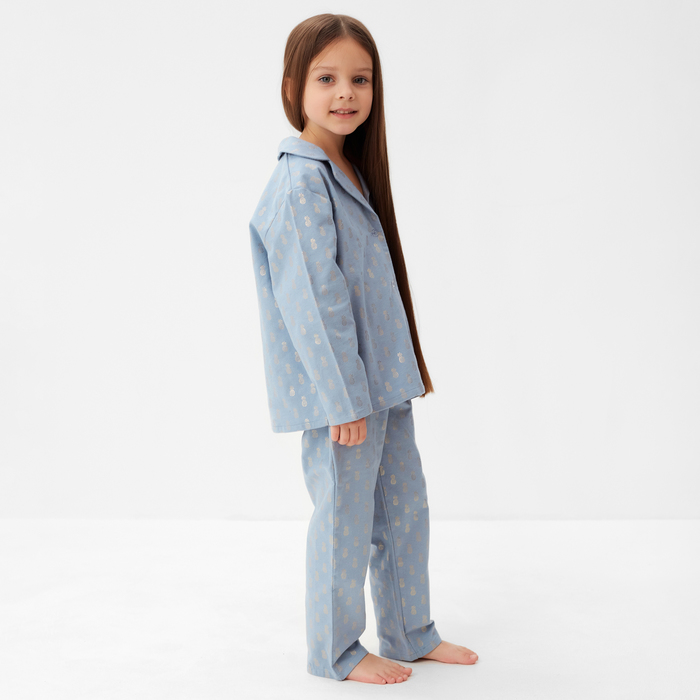 Пижама детская из фланели (рубашка, брюки) KAFTAN «Ананасы», рост 122-128 см, голубая
