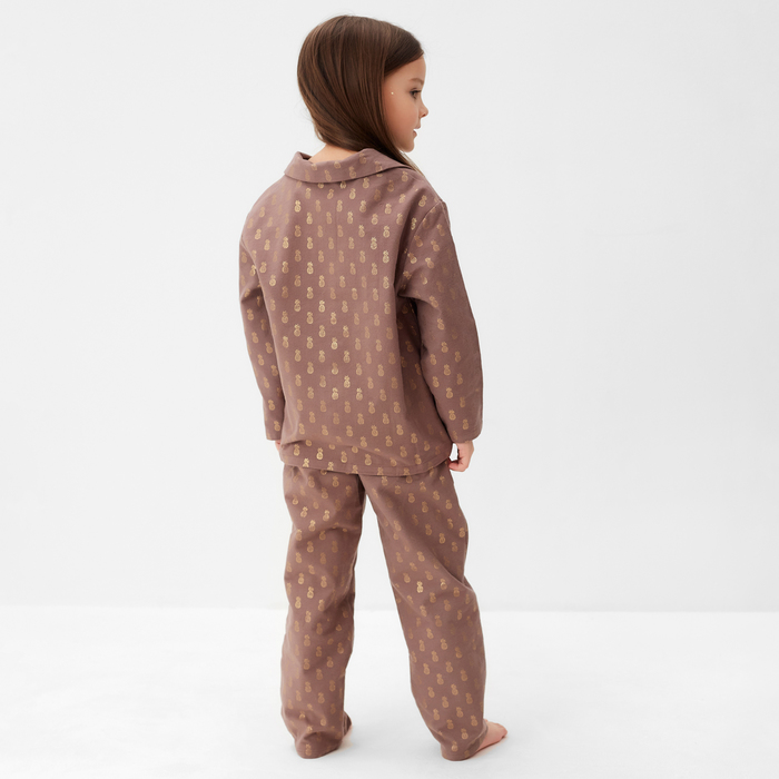 Пижама детская из фланели (рубашка, брюки) KAFTAN «Ананасы», рост 134-140 см, кофейная