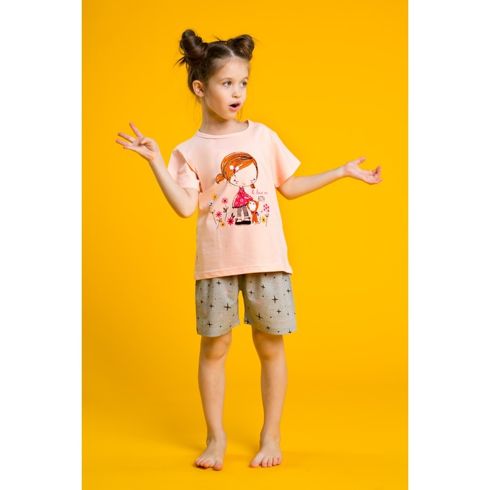 Пижама для девочки "Девочка с котёнком", рост 104-110 см, цвет персиковый/серый