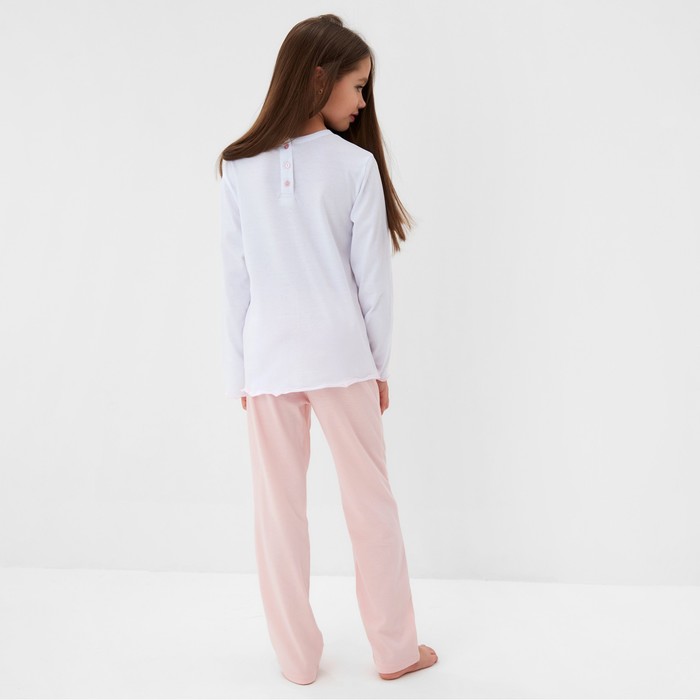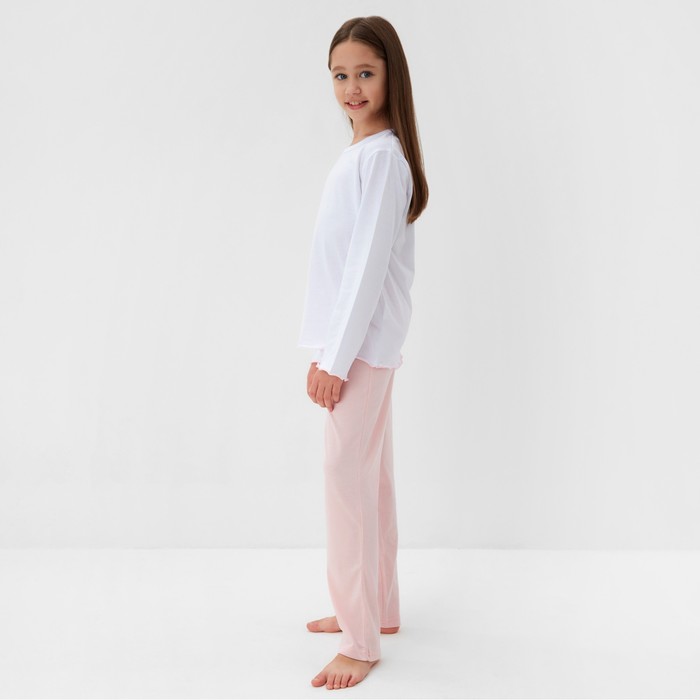 Пижама для девочки (кофта и брюки) MINAKU, белый/розовый, рост 140 см