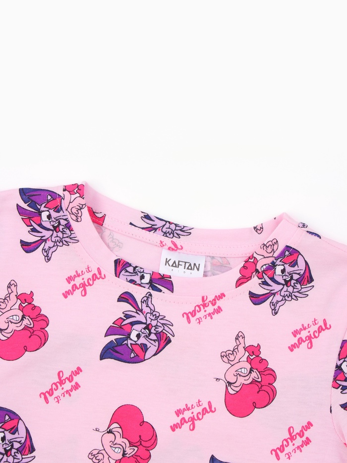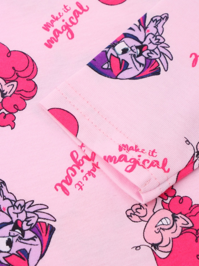 Прямой крой брюк и лонгслива не сковывает движения. Резинка на талии мягкая и эластичная, она не давит на животик, а яркий рисунок с пони радует глаз. Красочный принт с любимыми героинями мультсериала создаёт ощущение праздника и превращает подготовку ко сну в весёлую игру.