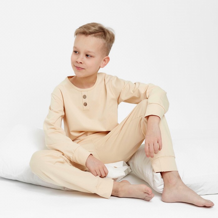 Пижама для мальчика (лонгслив, брюки) MINAKU, бежевая, рост 98 см