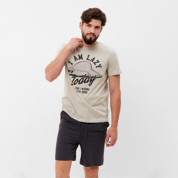 Пижама мужская (футболка, шорты) KAFTAN i`m lazy, размер 52, серая