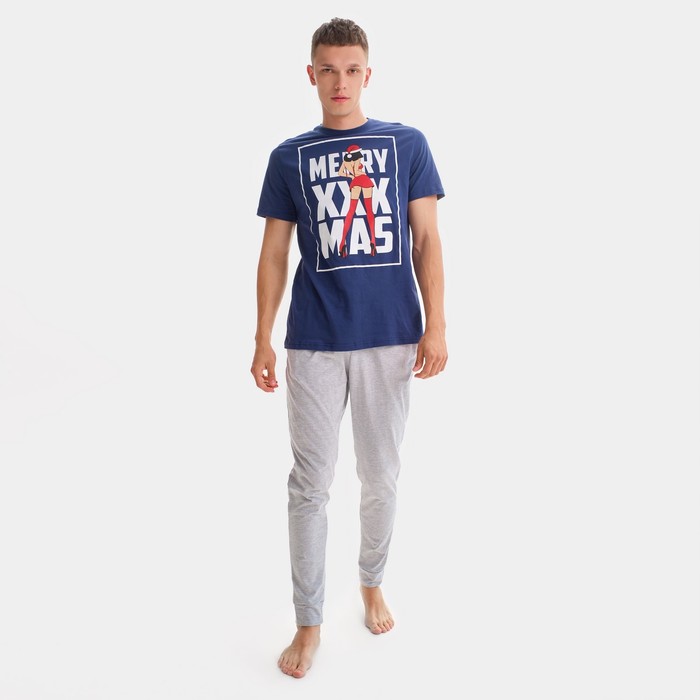 Пижама новогодняя мужская KAFTAN "X-mas", цвет серый/синий, размер 54