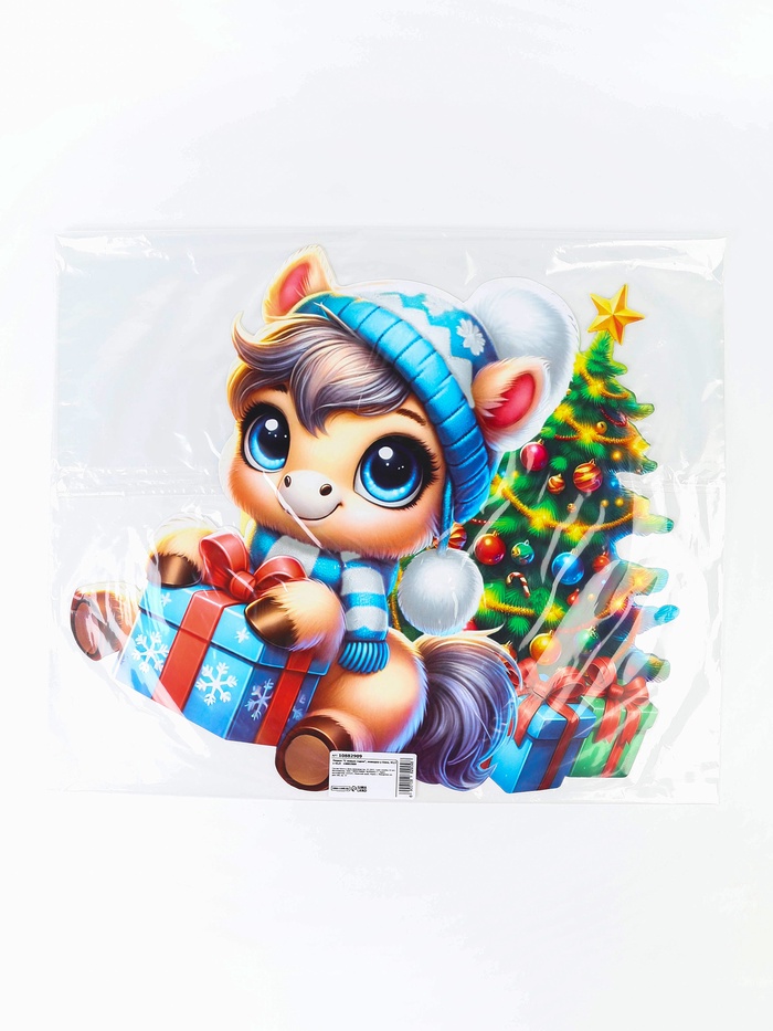 Плакат новогодний «С новым годом», лошадка у ёлки, 43.3×43.9