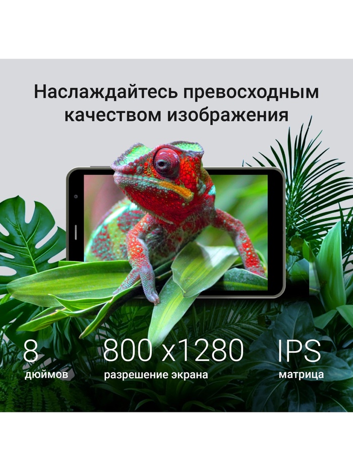 Компактный планшет с диагональю 8 дюймов сочетает удобство формата и современную функциональность. IPS-экран с разрешением 1280×800 пикселей обеспечивает чёткое изображение и комфортные углы обзора, а актуальная версия Android 15 открывает доступ к широкому спектру приложений и сервисов. Лаконичный серый корпус из практичного пластика делает устройство универсальным для работы, учёбы и отдыха.