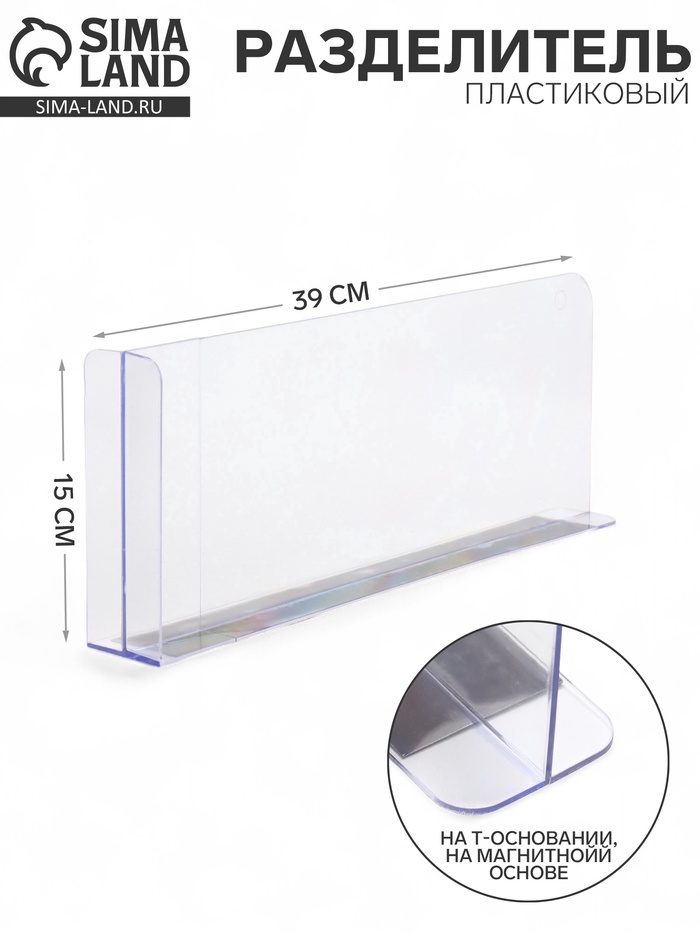 Пластиковый разделитель на Т-основании с передним ограничителем: 15 см, на магнитной основе: 37.5×6×15 см
