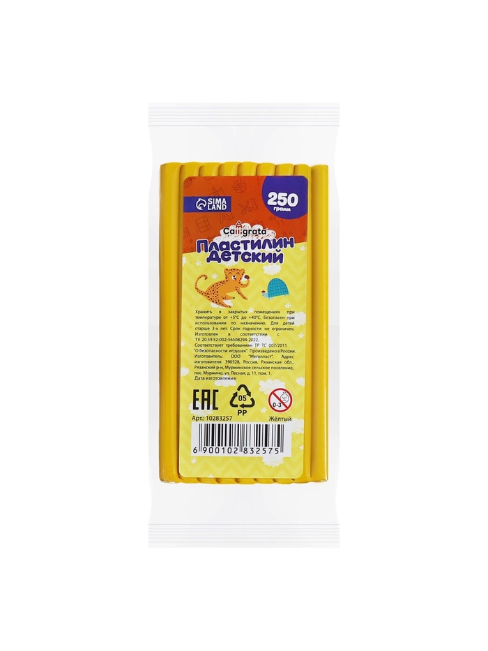 Пластилин Calligrata «Классический», 250 г, жёлтый
