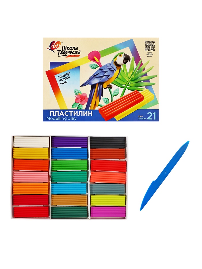 Пластилин детский "Школа творчества" изготовлен по новой рецептуре. Как и традиционный классический пластилин он обладает отличной пластичностью и органолептикой. Имеет красивые чистые цвета с матовым эффектом. Держит форму, не плавится, не растекается при высоких температурах (до +40 градусов С). Можно использовать в технике рисования, так как в отличие от классического пластилина при размазывании по бумаге даёт дорожку длиннее на 30%. Легко смывается водой или влажной салфеткой с любой поверхности.