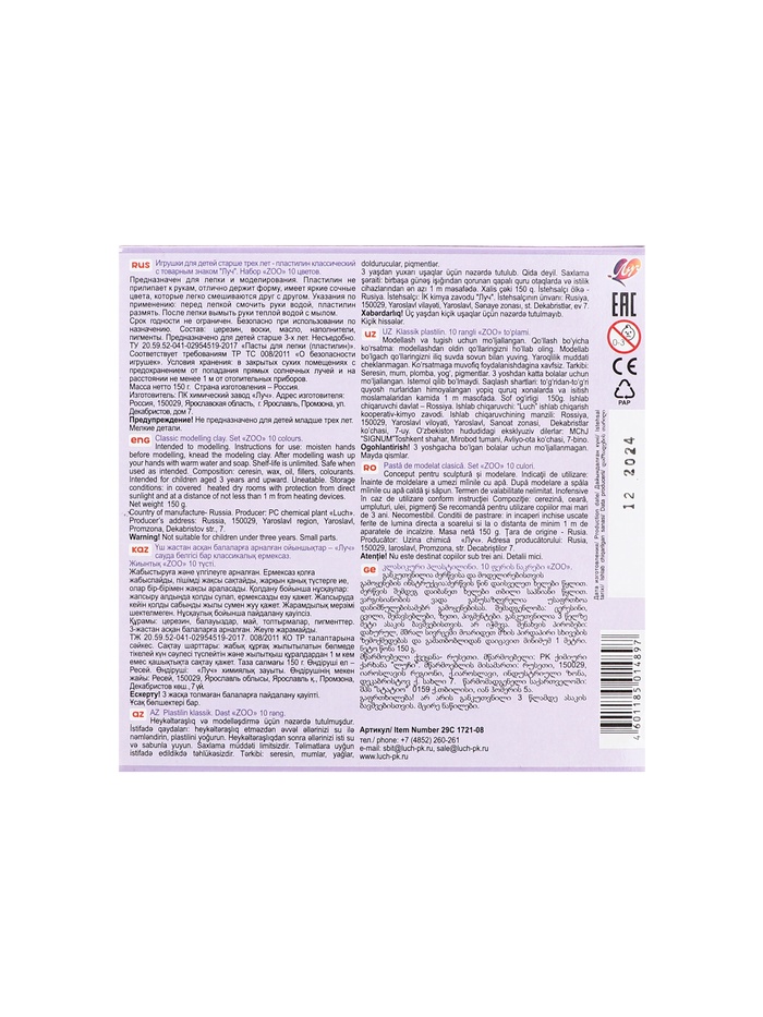 Пластилин «ZOO» предназначен для лепки и моделирования в детском творчестве. Пластилин рекомендуют не только педагоги и родители, но и профессиональные мультипликаторы. В меру мягкий и в меру твёрдый, не рвётся и не крошится при перегибании, поделки из него отлично держат форму, не выцветают. Без выраженного запаха, не липнет к рукам.