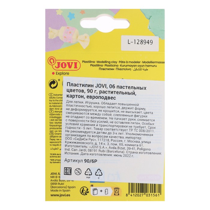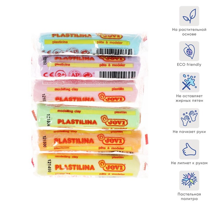 НОВЫЕ ПАСТЕЛЬНЫЕ ЦВЕТА. Пластилин JOVI имеет российскую сертификацию для самых маленьких детей до трех лет. Рекомендован Российским Государственным Медицинским Университетом для развития творческих способностей ребенка и входит в списки для покупки родителями во многих детских садах, школах, детских центрах и студиях.