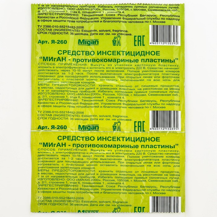 Меры предосторожности: не трогать включенный в розетку электрофумигатор влажными руками, металлическими предметами и не допускать попадания влаги на электрофумигатор. Включать комплект на