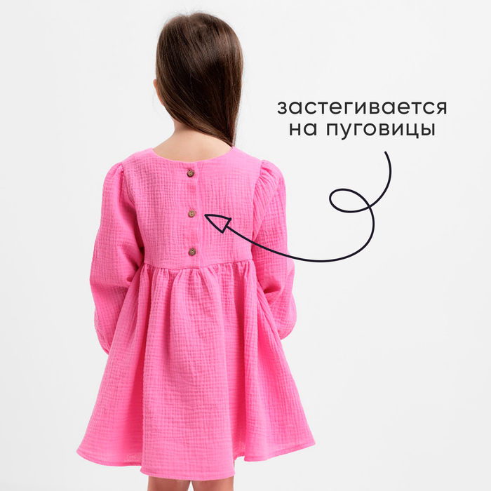 Платье для девочки KAFTAN «Муслин» с длинным рукавом, розовое, рост 122-128 см