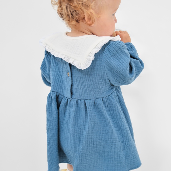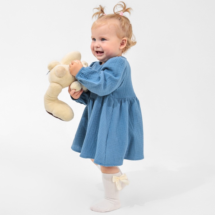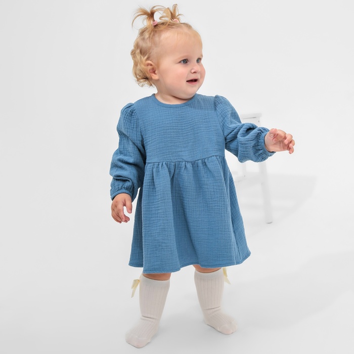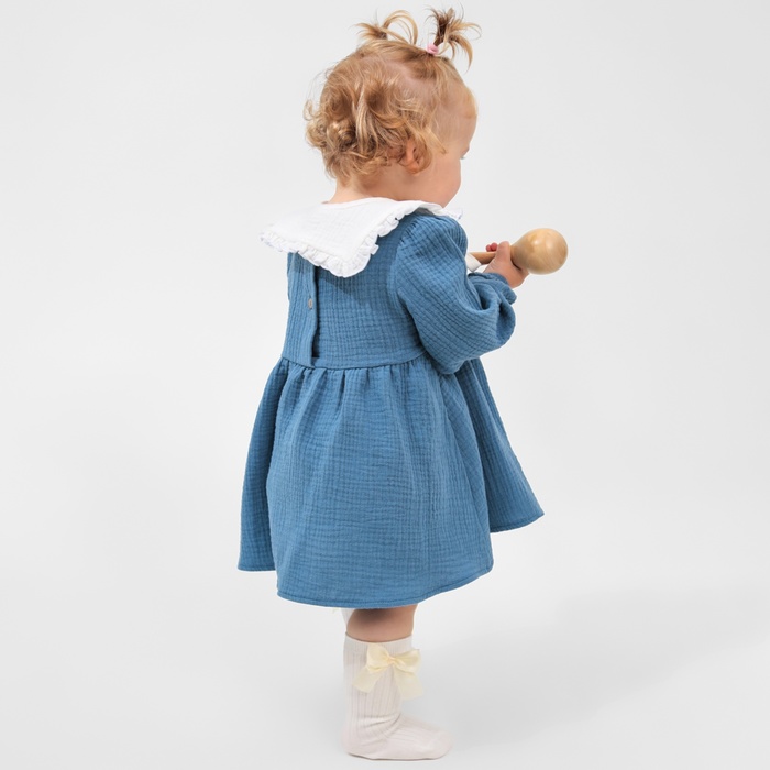 Платье для девочки с воротничком «Крошка Я. Муслин», рост 86-92 см, тёмно-синее