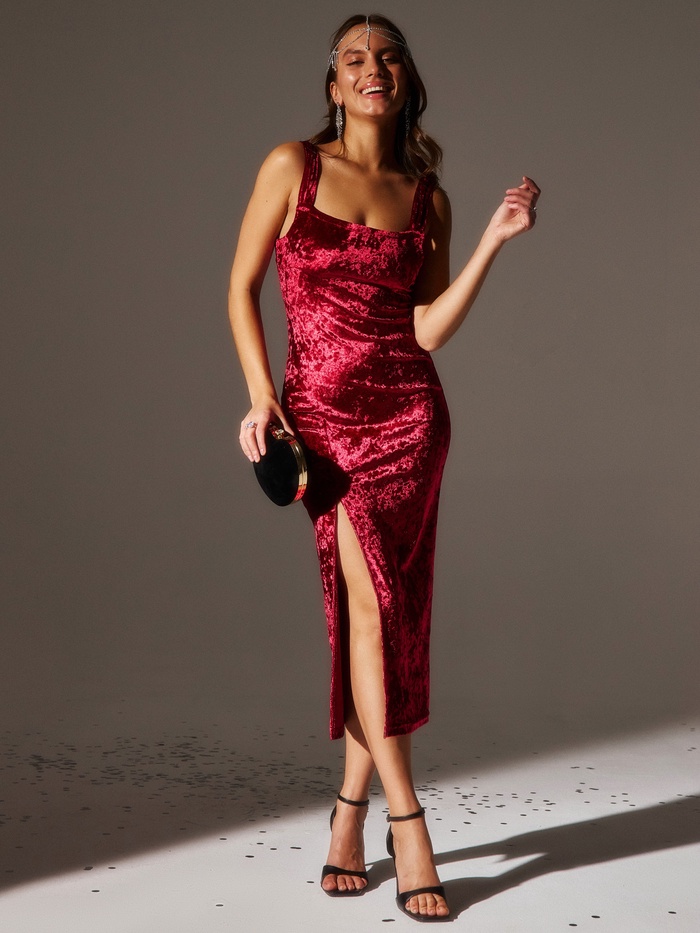 Приобретите настоящее украшение вашего гардероба — изысканное бархатное платье MINAKU насыщенного красного цвета. Благодаря классическому крою «карандаш», свободному верху и длине миди эта модель создаст безупречный силуэт и подчеркнет вашу природную красоту. Добавьте немного волшебства и блеска в свою жизнь, надев его на праздничные мероприятия.
