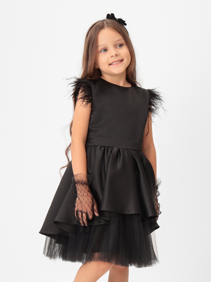Платье нарядное для девочки KAFTAN с перьями, чёрное, рост 122-128 см
