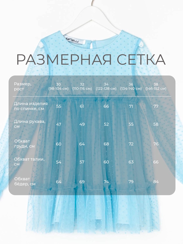 Платье нарядное для девочки KAFTAN в горошек, голубое, рост 110-116 см