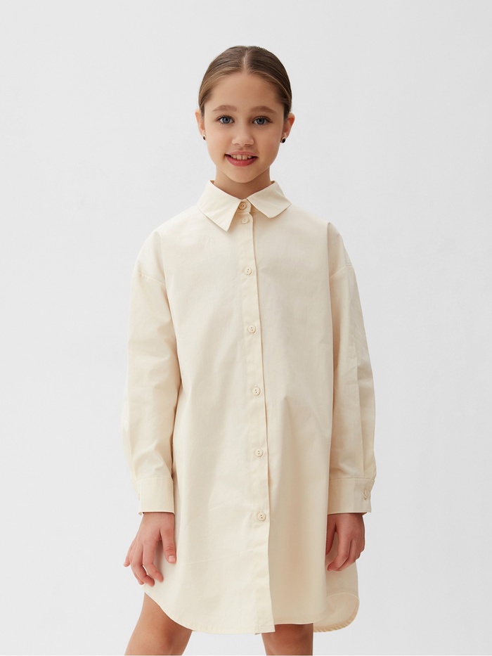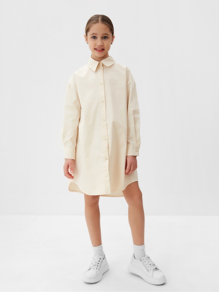 Платье-рубашка для девочки MINAKU: PartyDress, бежевое, рост 134-140 см