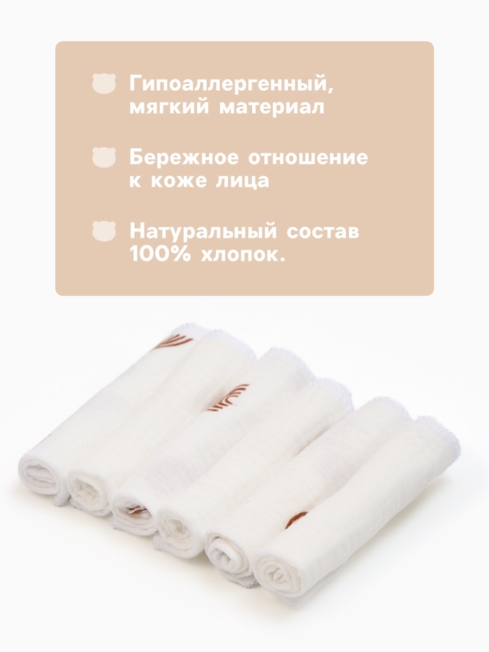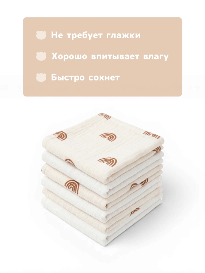 Платки носовые детские «Крошка Я» Beige rainbow, 20×20 см - 6 шт., муслин, 100 % хлопок