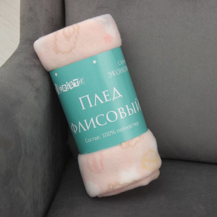Плед изготовлен из нежного на ощупь флиса — синтетического трикотажного полотна, которое обладает массой приятных свойств. Благодаря им он: