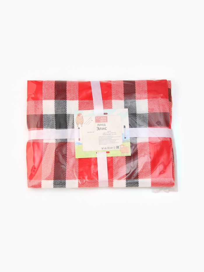 Плед "Элис" 150х200 см, красн/бел/антр рап.4, шерсть 15%, хл 5%, пэ 60%, пан 20%