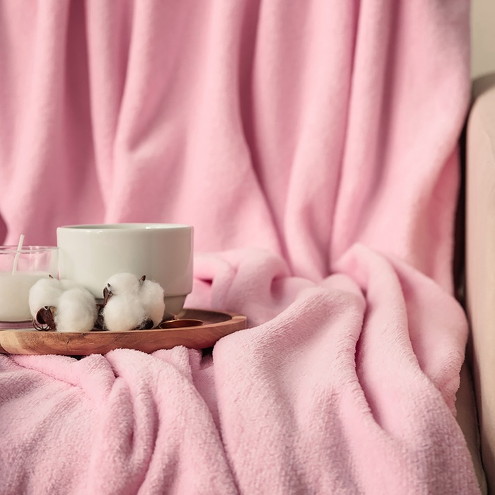 Плед Этель подходит для дивана в гостиной. Розовый цвет создаёт тепло, где семья смотрит фильмы вечером. Размер 150x200 см накрывает двоих.