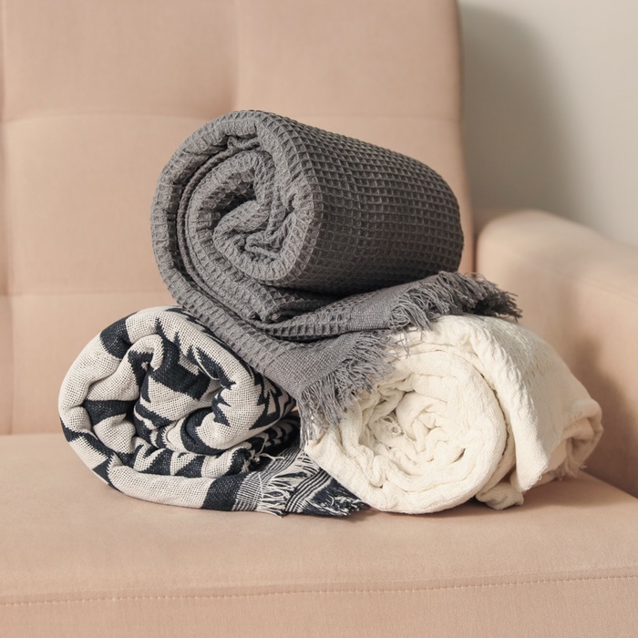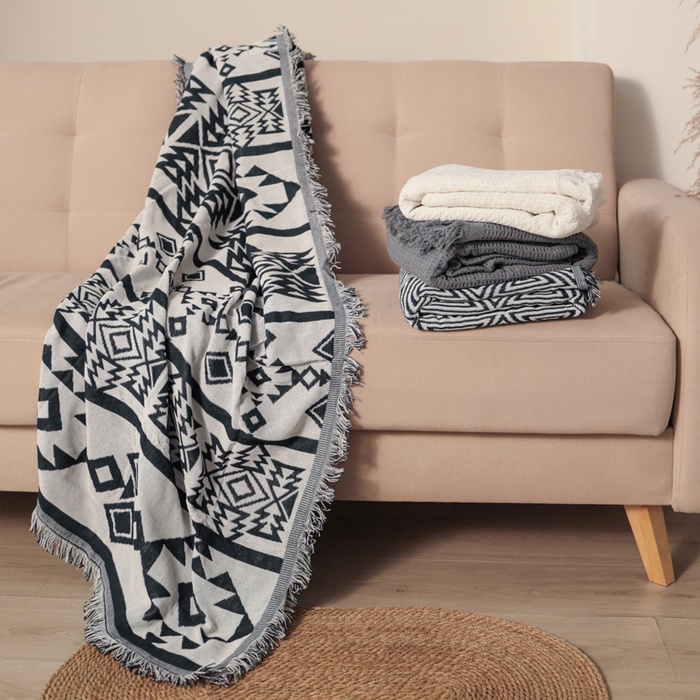 Плед с бахромой «Этель. Этника», 130×180 см, серый