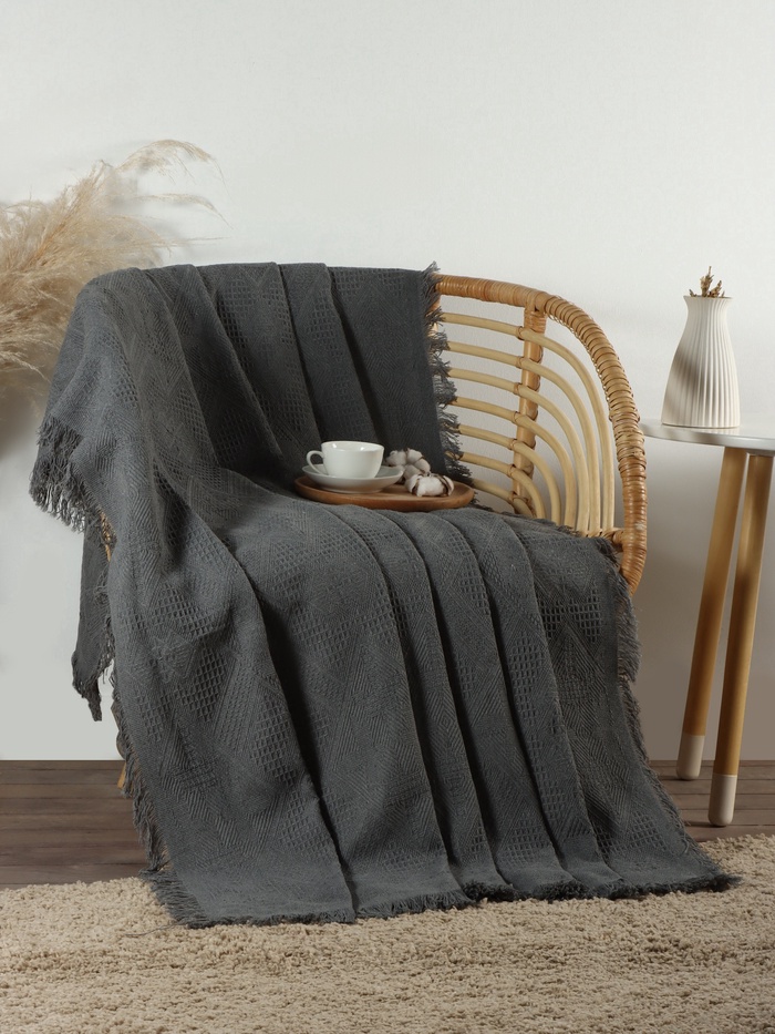 Серый плед Этель с бахромой — это надёжный спутник для спокойных моментов, который мягко окутывает и создаёт атмосферу уединения в доме. Он подходит для тех, кто ищет простой способ добавить тепла в повседневную жизнь, будь то чтение книги или вечерний отдых. Этот плед становится частью привычного уюта, помогая расслабиться после долгого дня.