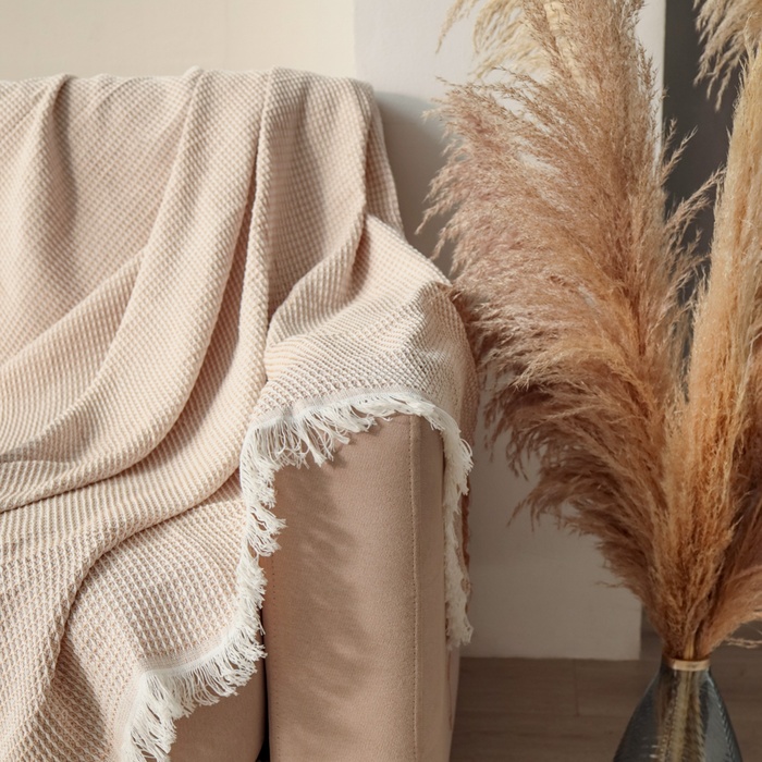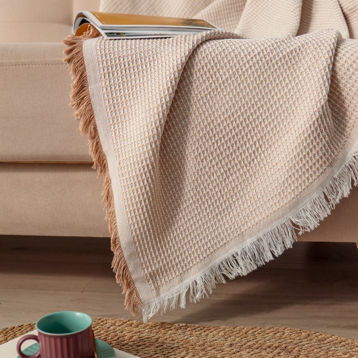Плед с бахромой «Этель» Waffle, 130×180 см, бежевый