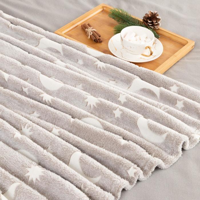 Плед светящийся в темноте Этель «Луна», 180×200 см, корал-флис